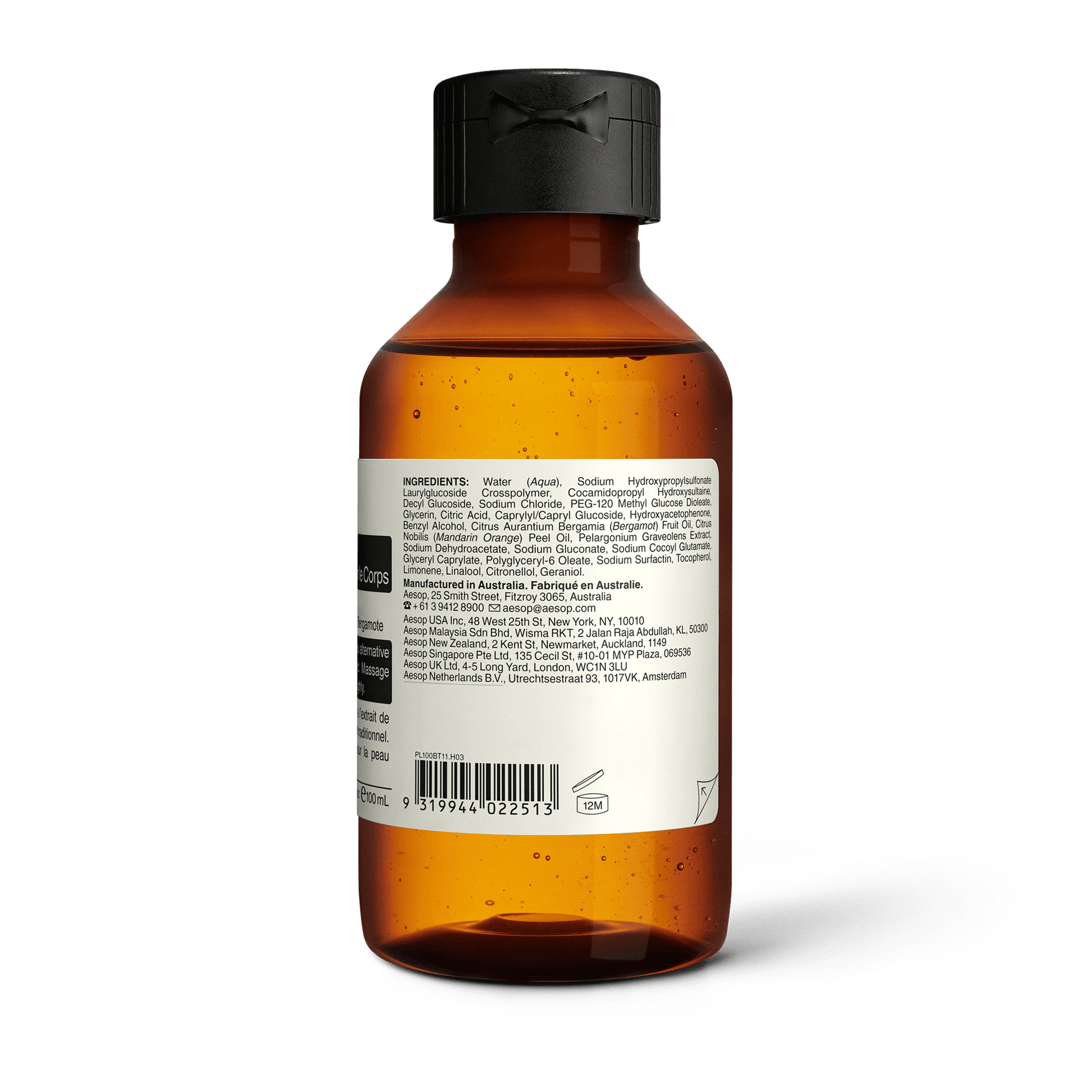 Dispense into hands or onto a sea sponge. Massage onto soaked skin from neck to toe, then rinse thoroughly.